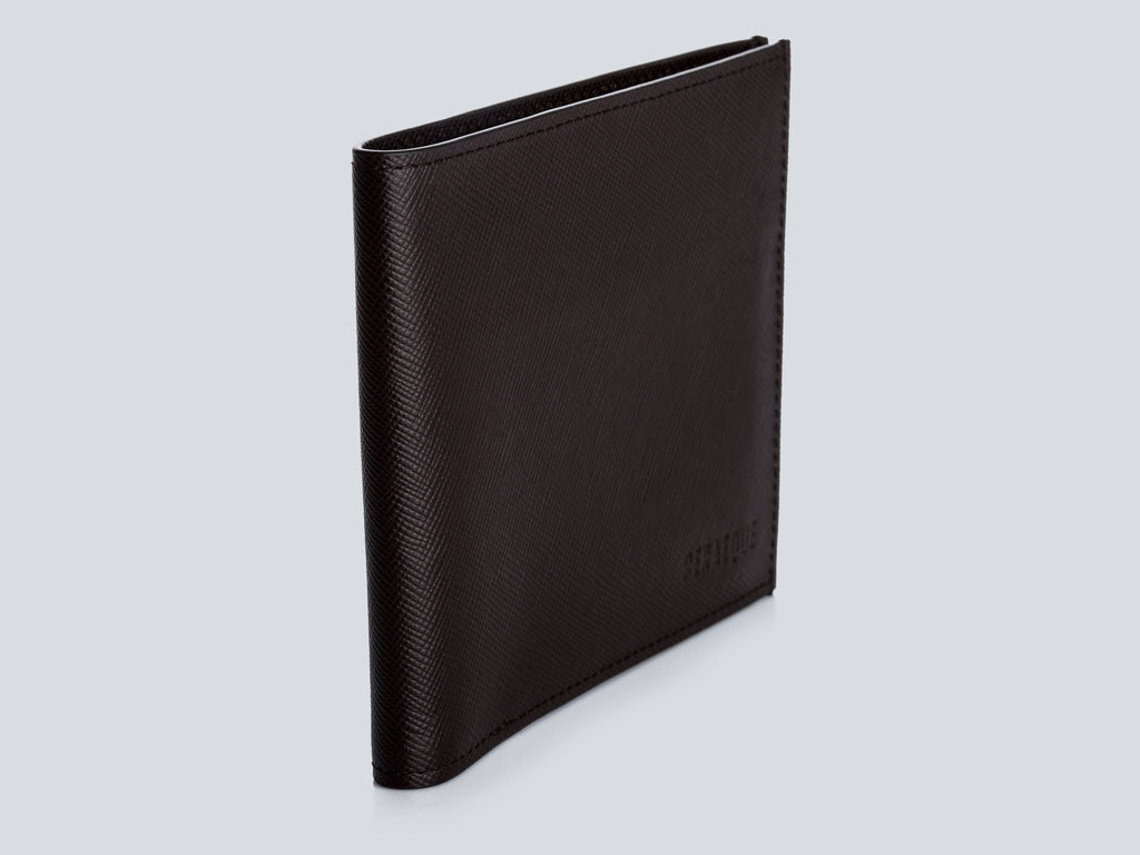 A NEW COMPACT BI-FOLD WALLET DESIGN WITH UNIQUE FOLDING ACTION. INCORPORATES TWO POCKETS THAT EXPAND TO ACCEPT MULTIPLE CARDS WHEN THE WALLET IS OPENED AND CONTRACT TO SECURE CONTENTS WHEN CLOSED. THIS UNIQUE DESIGN OPTIMISES THE USE OF SPACE, ENABLING THE WALLET TO REMAIN EXCEPTIONALLY SLENDER CONTAINING MULTIPLE CARDS AND BILLS.